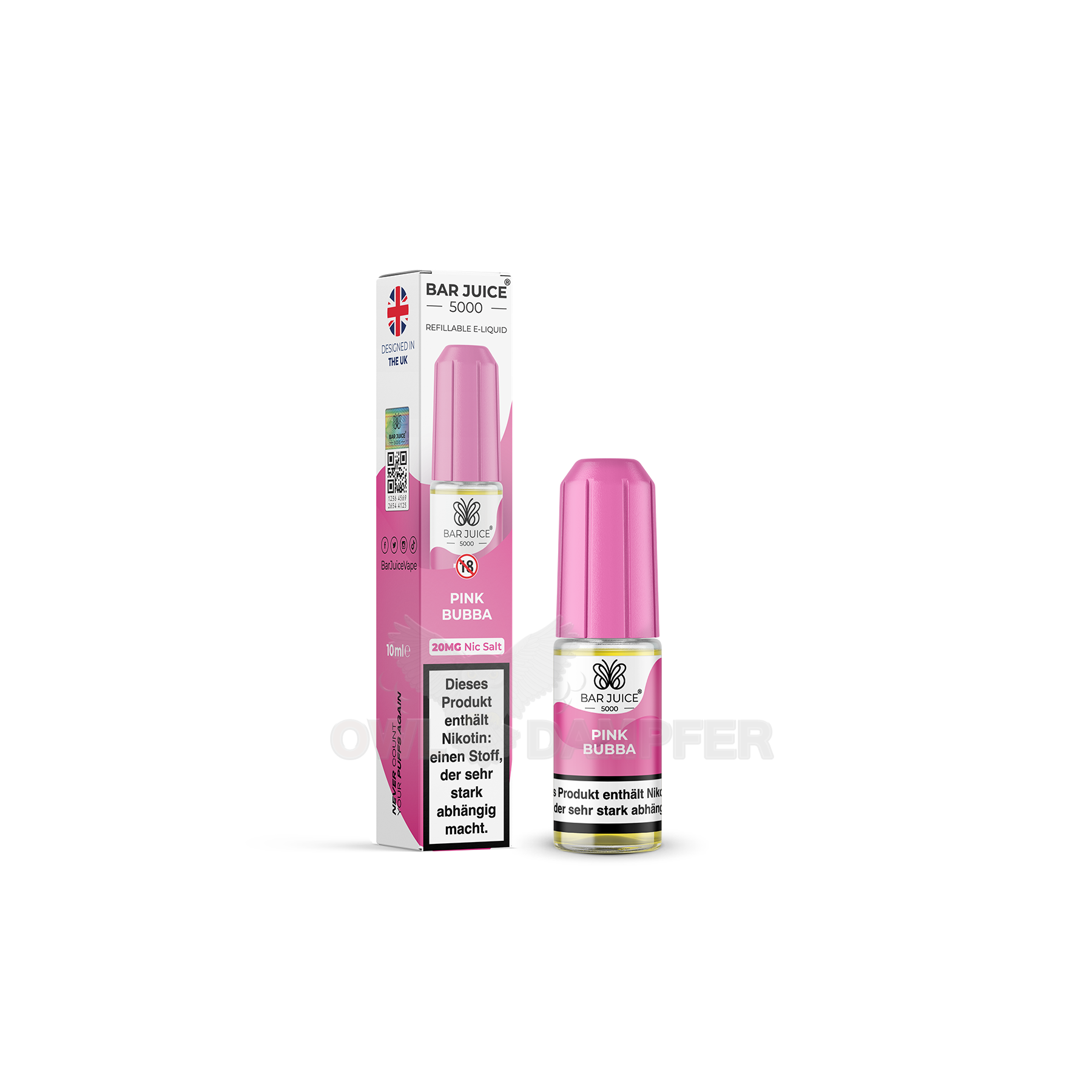 Lass dich vom köstlichen Aroma des Pink Bubba Vape Juices verzaubern – ein Geschmackserlebnis, das dich direkt in die süßen Erinnerungen an spritzige Erdbeerkaugummis zurückversetzt. Es fühlt sich an wie das Aufplatzen einer Kaugummiblase – intensiv, fruchtig und herrlich duftend – und macht dein Dampfen zu einem echten Genussmoment inmitten von aromatischen Wolken.
