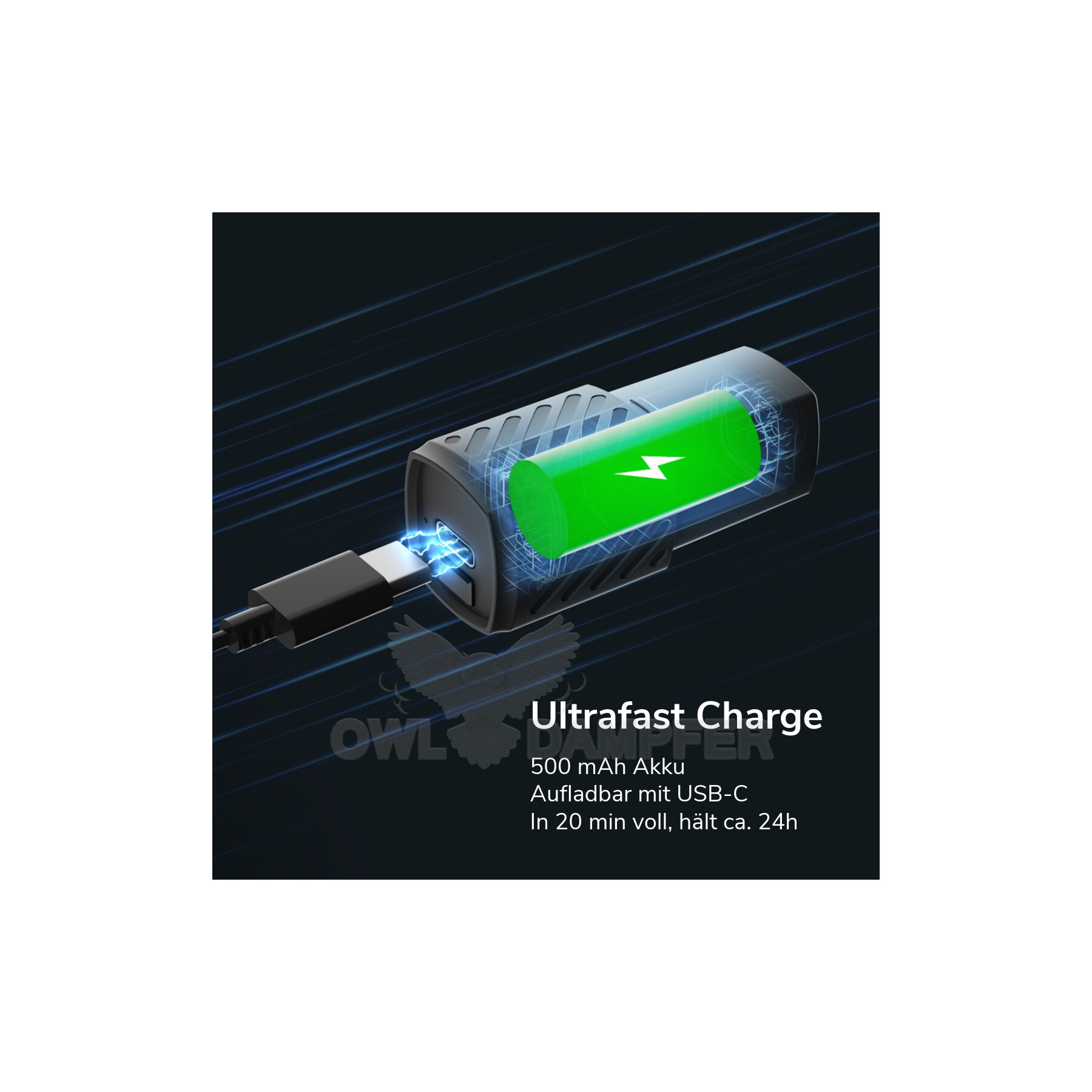 Hinweis: Dieses Produkt nutzt ein innovatives Gehäuse aus PLA. Zusammen mit der wiederverwendbaren Akku-Einheit setzen wir auf ein modulares System, das am Ende der Laufzeit eine einfache stoffliche Trennung und fachgerechtes Recycling ermöglicht.
