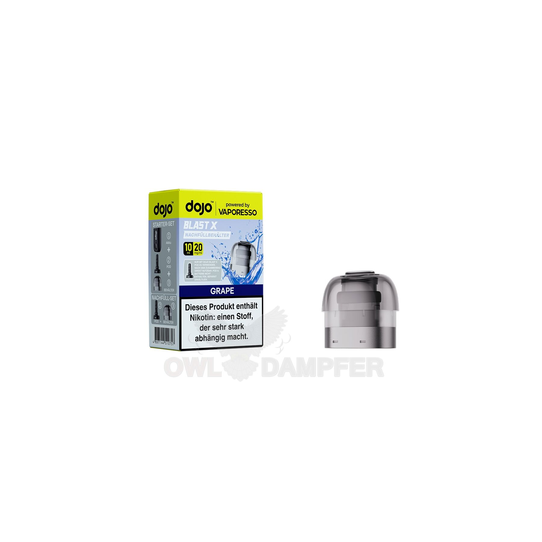 Der Dojo Blast X Nachfüllbehälter wurde speziell für das Dojo Blast X System entwickelt und bietet ein konstantes Dampferlebnis – ganz ohne aufwendige Einstellungen.