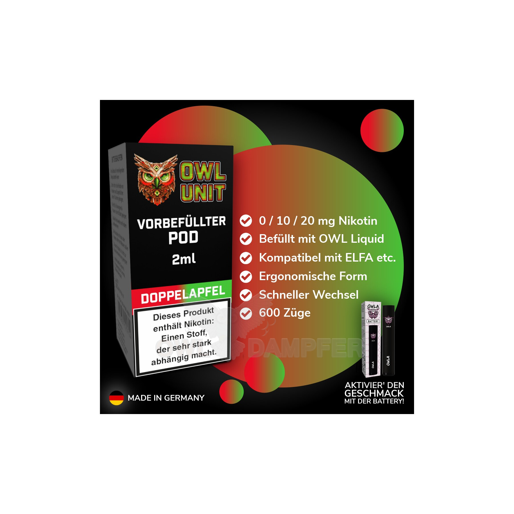 Nur für erwachsene Nutzer bestimmt. Nikotinhaltige Varianten enthalten Nikotin, einen Stoff, der abhängig macht. Bitte außerhalb der Reichweite von Kindern aufbewahren und sachgerecht entsorgen.