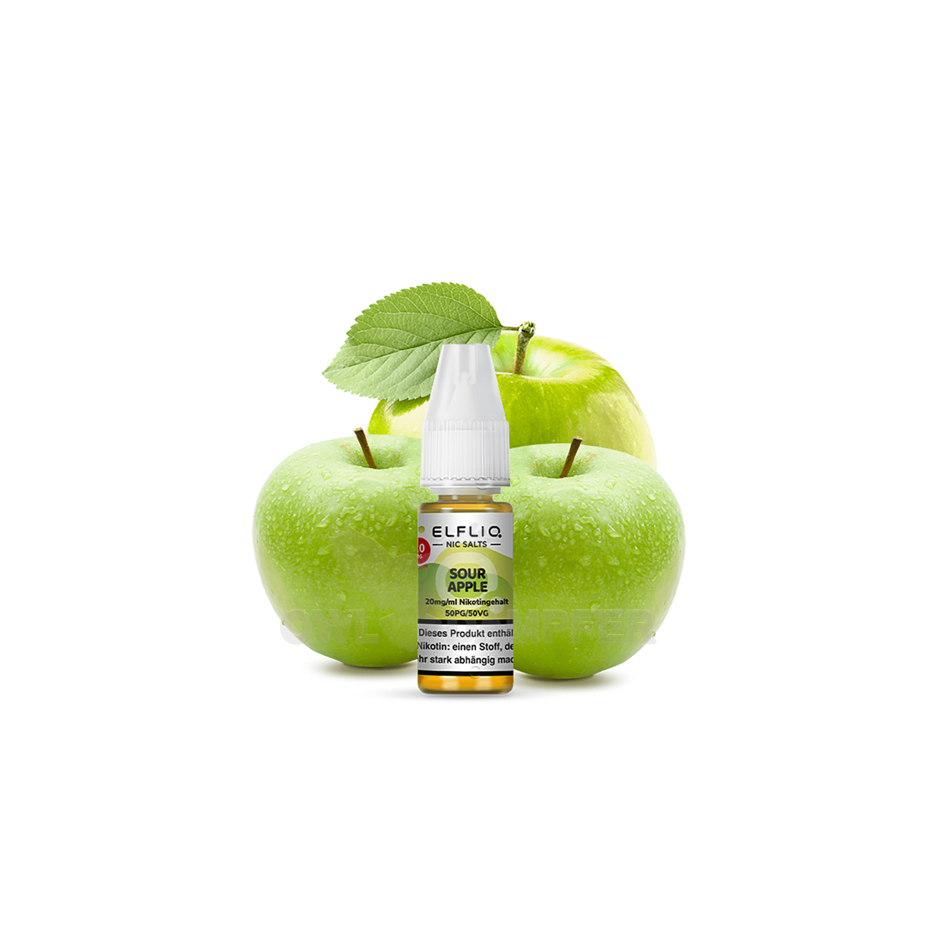 Beim Dampfen des ELFLIQ Nikotinsalz-Liquids Sour Apple entfaltet sich der Geschmack von sauren Äpfeln. Das Nikotinsalz-Liquid ist in den Nikotinstärken 10 mg/ml oder 20 mg/ml erhältlich. Entscheiden Sie sich für dieses Liquid, erhalten Sie 10 ml Nikotinsalz-Liquid in einer 10 ml Flasche.
