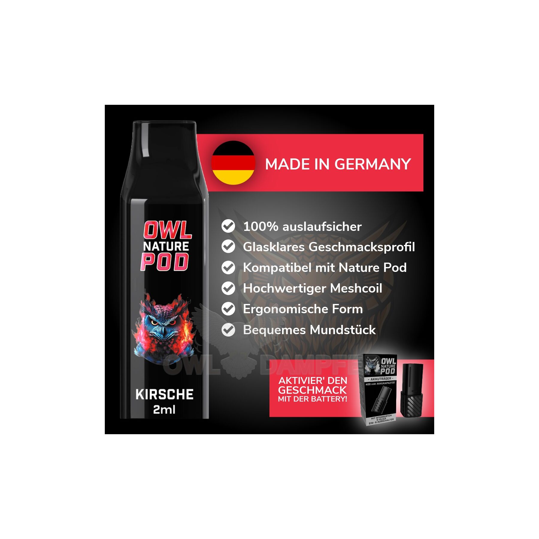 Was macht unseren Cherry Pod so besonders? Es ist das Zusammenspiel aus deutschem Premium-Liquid und der integrierten 1.2Ω Mesh-Wicklung. Statt punktueller Hitze sorgt das Mesh-Gewebe für eine gleichmäßige Verdampfung. Das Ergebnis: Die Kirsch-Aromen entfalten sich ohne Beigeschmack und bieten dir ein konstantes MTL-Erlebnis von der ersten Sekunde an.