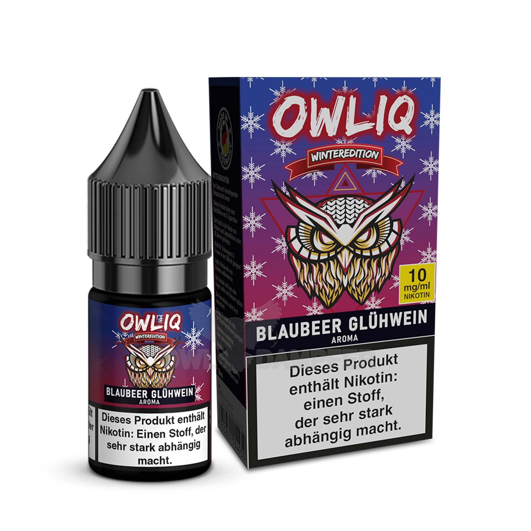 - Überdurchschnittliche Qualität und Sicherheit Made in Germany! Bei OWL legen wir größten Wert auf die Qualität unserer Produkte. Unser neues OWLIQ Blaubeer Glühwein Liquid wird unter strengsten Qualitätskontrollen in Deutschland hergestellt und besteht aus hochwertigen Inhaltsstoffen und erfüllt alle wichtigen Sicherheitsstandards.