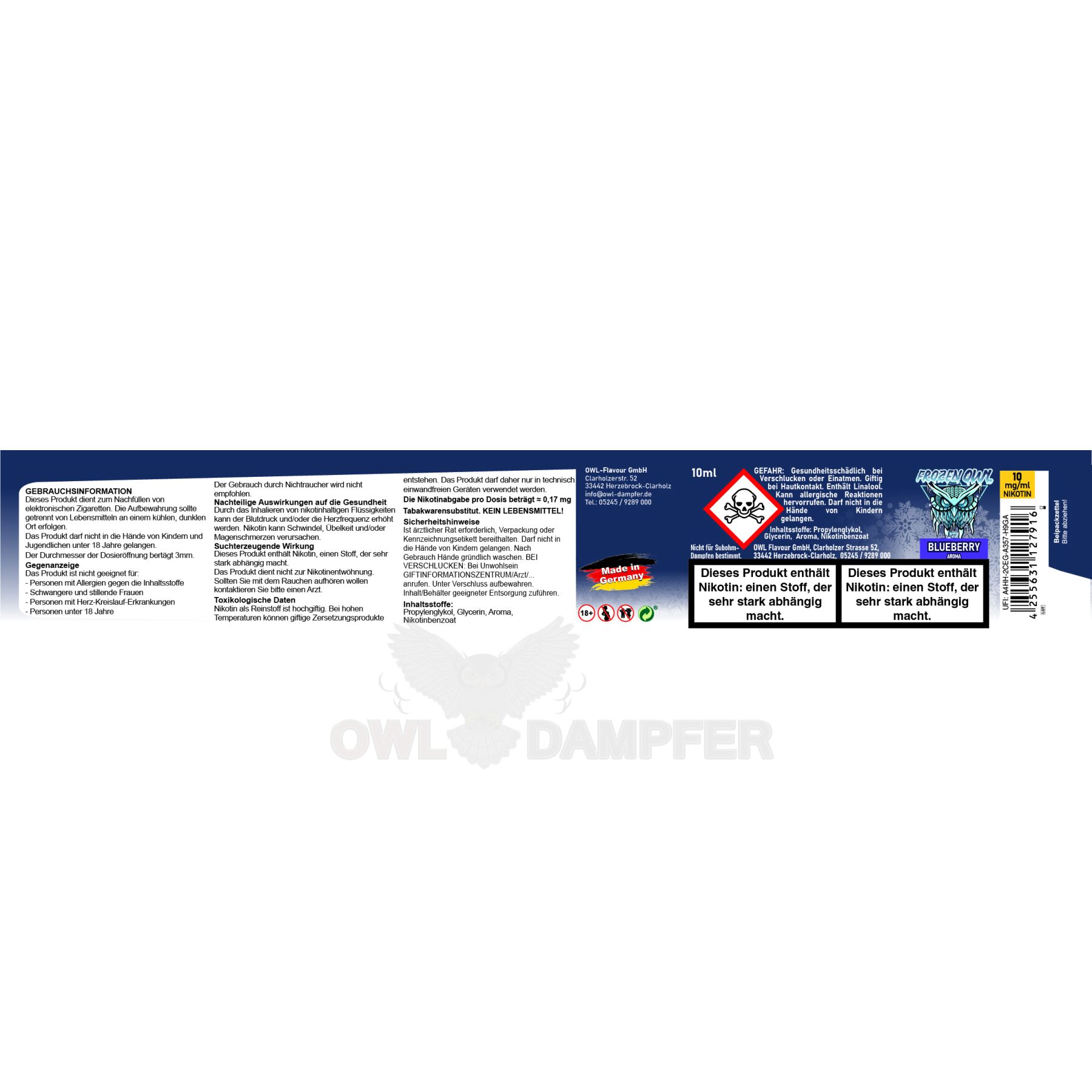 Erlebe das erfrischende Dampfvergnügen mit FROZEN OWL Blueberry E-Liquid 10 mg