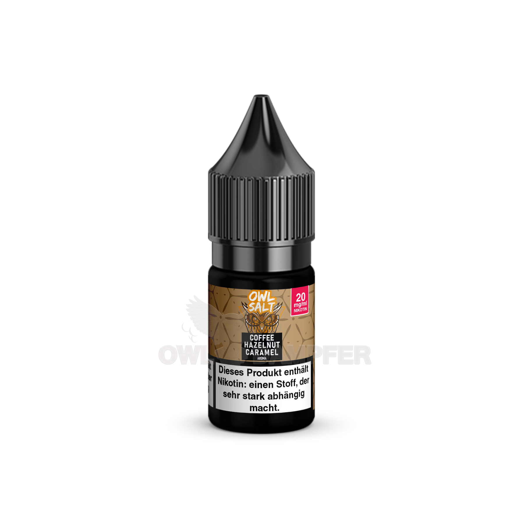 •Praktische 10-ml-Flasche für einfache Handhabung: Das OWL Salt Coffee Hazelnut Caramel Nikotinsalzliquid wird in einer praktischen 10-ml-Flasche geliefert. Dank der handlichen Größe können Sie Ihre E-Zigarette mühelos und ohne Komplikationen nachfüllen.