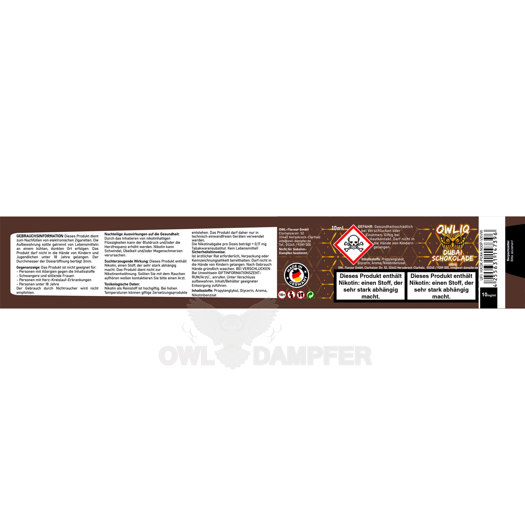 - Bei OWLIQ legen wir höchsten Wert auf Qualität und Sicherheit, sodass Ihre Kunden nur die hochwertigsten Liquids dampfen.