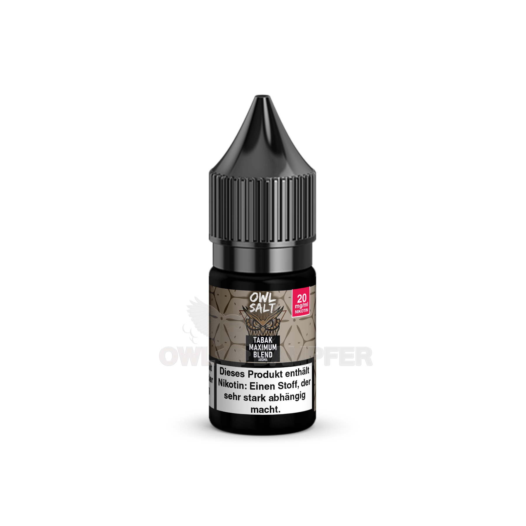 • Praktische 10-ml-Flasche für einfache Handhabung: Das OWL Salt Maximum Blend Nikotinsalzliquid wird in einer handlichen 10-ml-Flasche geliefert. Die praktische Größe ermöglicht Ihnen eine einfache Handhabung und ein problemloses Nachfüllen Ihrer E-Zigarette.