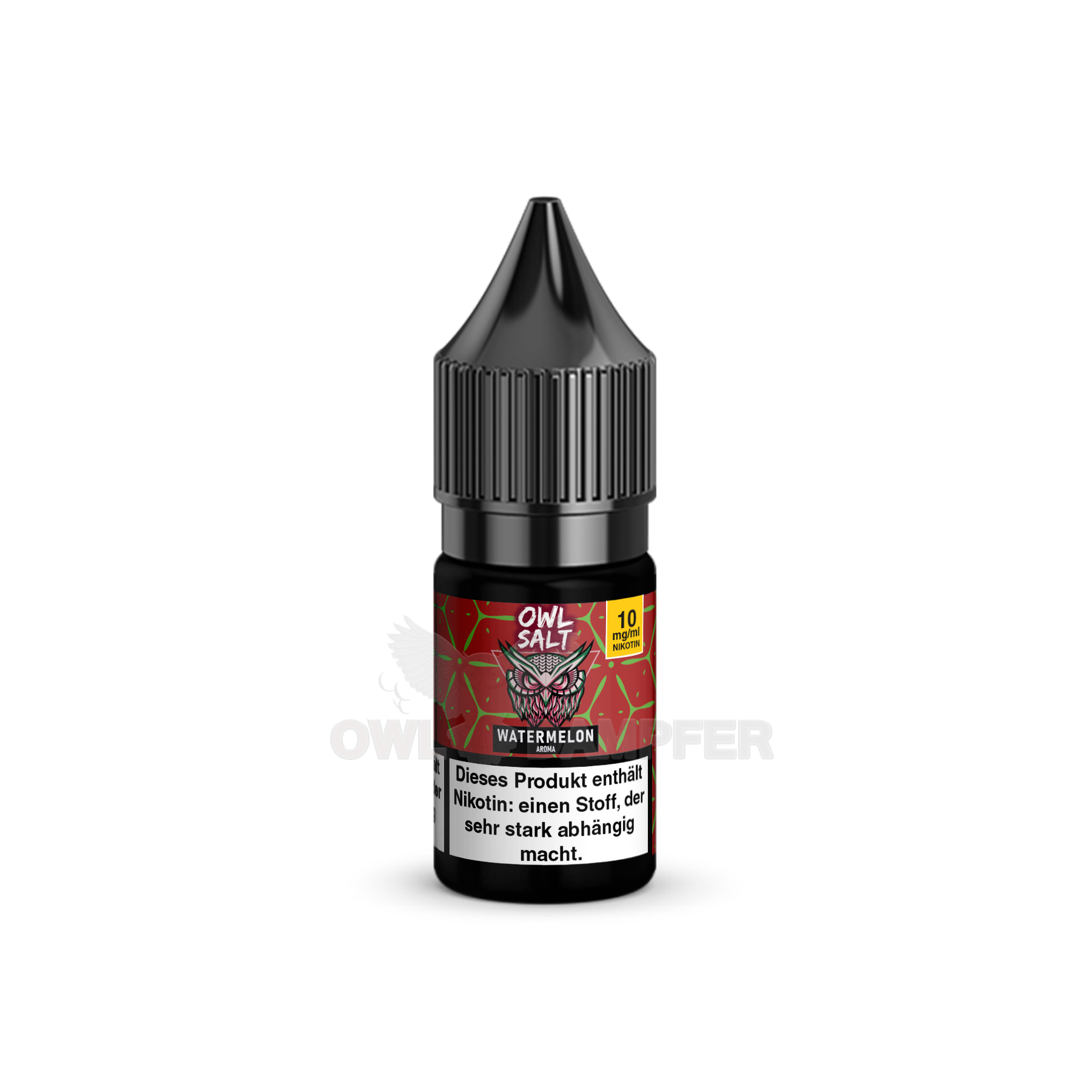 Das OWL Salt Watermelon E-Liquid wird in einer praktischen 10-ml-Flasche geliefert. Die handliche Größe ermöglicht Ihnen eine einfache Handhabung und ein problemloses Nachfüllen Ihrer E-Zigarette, egal ob zu Hause oder unterwegs.