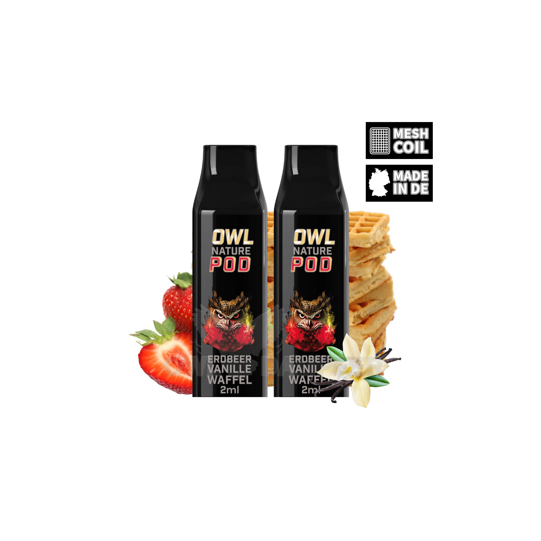 Unvergleichlicher Dampfgenuss: Der OWL Nature POD fängt den köstlichen Geschmack von Erdbeer-Vanille-Waffeln ein und zaubert ein belebendes Dampferlebnis, das die süße Erdbeer- und Vanillenote perfekt macht.