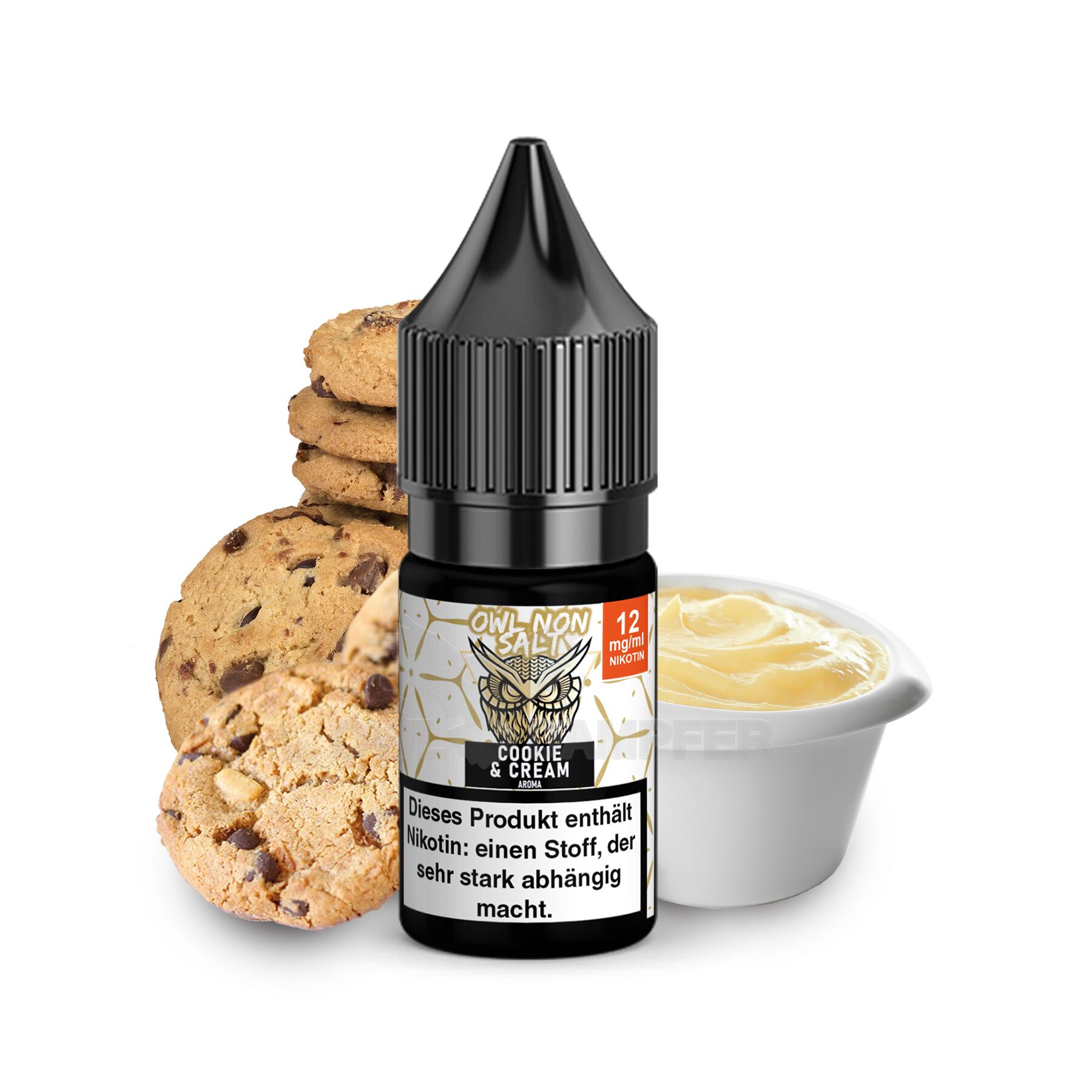 - Das OWL Non SALT Cookie & Cream E-Liquid ist in den Nikotinstärken 12 mg erhältlich und ermöglicht Ihnen einen reinen Geschmacksgenuss ganz nach Ihren Vorlieben.