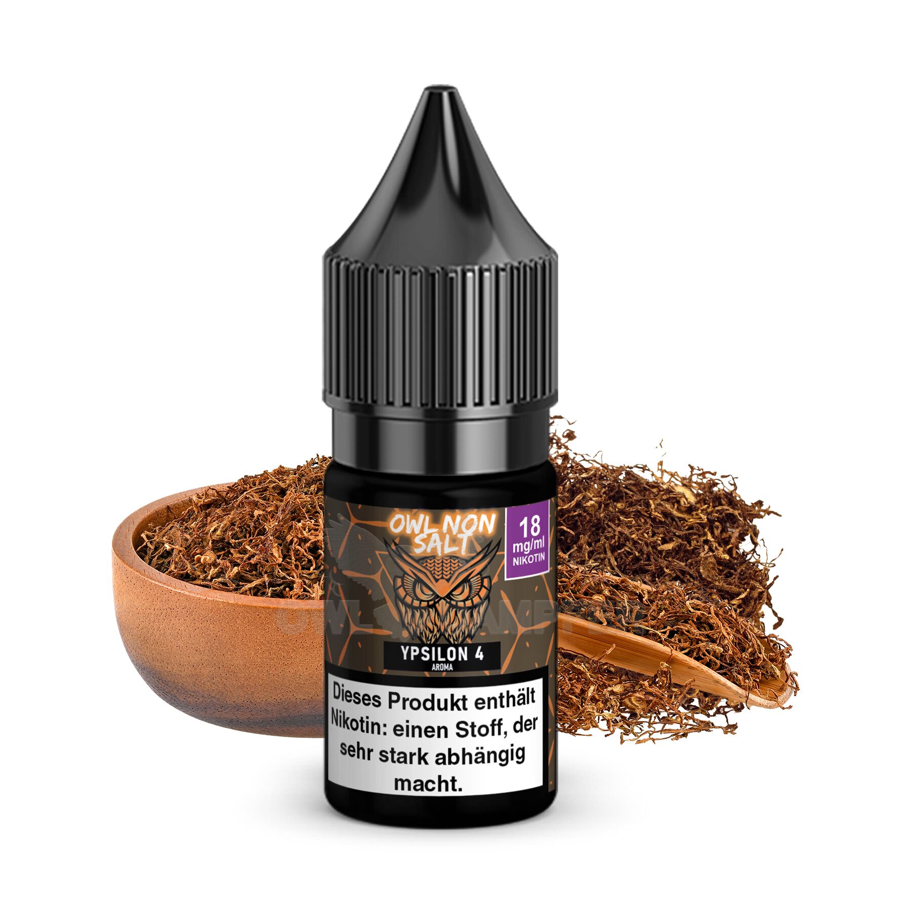 • Herbes E-Liquid mit besonderem Geschmack: Das OWL Non Salt Ypsilon 4 Liquid hat einen würzigen Tabakgeschmack.