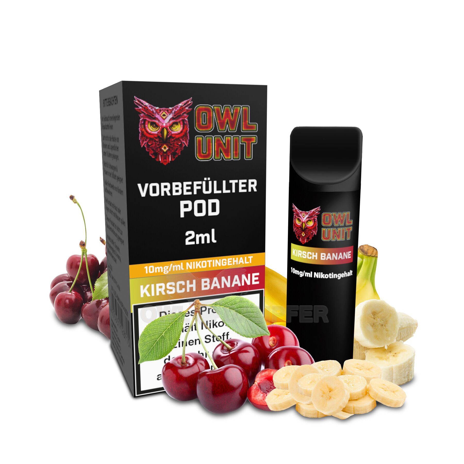 Entdecken Sie den neuen OWL Unit Pod - Ihre universelle Lösung für ein unvergleichliches Dampfvergnügen! Dieser vielseitige Pod ist kompatibel mit einer Vielzahl gängiger Modelle wie ELFA, Tappo, Expod, Cuco Pod Battery uvm. Gerne könnt Ihr diese Akku Einheiten bei uns dazu bestellen. Unsere OWL Unit Pods sind bereits mit 2 Millilitern hochwertigem Nikotinsalzliquid befüllt. Dabei haben Sie die Wahl zwischen drei verschiedenen Nikotinkonzentrationen: 0 mg/ml, 10 mg/ml und 20 mg/ml. Das bedeutet, Sie können Ihren Nikotinbedarf ganz nach Ihren persönlichen Vorlieben decken. Zur Auswahl stehen 30 Geschmacksrichtungen der beliebten OWL Salt Reihe - bei uns finden Sie garantiert Ihren Lieblingsgeschmack! Die 30 Sorten sind Apple Peach, Banana Ice, Blueberry, Blueberry Sour Raspberry, Buttermilch Zitrone, Cappuccino, Cherry, Cola, Doppelapfel, Eisbonbon, Energy, Grape Mint, Kirsch Banane, Kiwi Passionfruit Guava, Lime Mint, Mango, Melon Mint, Menthol, Orange Zitronenbonbon, Peach Ice, Pfirsich Grüner Tee, Pfirsich Maracuja, Pink Lemonade, Schoko Minze, Spearmint, Strawberry Ice, Strawberry Ice Cream, Strawberry Kiwi, Zitrone Ice, Zitronenkuchen.