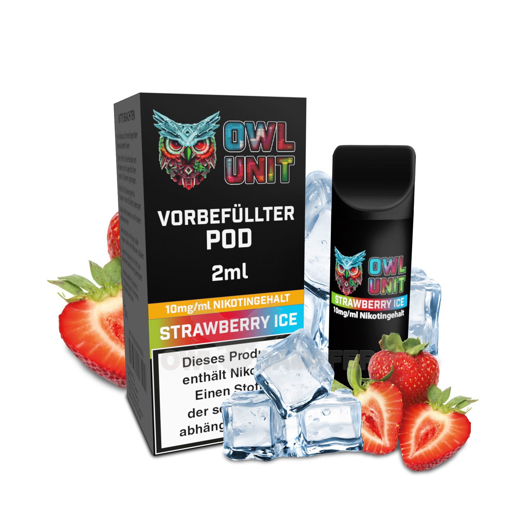 Entdecken Sie den neuen OWL Unit Pod - Ihre universelle Lösung für ein unvergleichliches Dampfvergnügen! Dieser vielseitige Pod ist kompatibel mit einer Vielzahl gängiger Modelle wie ELFA, Tappo, Expod, Cuco Pod Battery uvm. Gerne könnt Ihr diese Akku Einheiten bei uns dazu bestellen. Unsere OWL Unit Pods sind bereits mit 2 Millilitern hochwertigem Nikotinsalzliquid befüllt. Dabei haben Sie die Wahl zwischen drei verschiedenen Nikotinkonzentrationen: 0 mg/ml, 10 mg/ml und 20 mg/ml. Das bedeutet, Sie können Ihren Nikotinbedarf ganz nach Ihren persönlichen Vorlieben decken. Zur Auswahl stehen 30 Geschmacksrichtungen der beliebten OWL Salt Reihe - bei uns finden Sie garantiert Ihren Lieblingsgeschmack! Die 30 Sorten sind Apple Peach, Banana Ice, Blueberry, Blueberry Sour Raspberry, Buttermilch Zitrone, Cappuccino, Cherry, Cola, Doppelapfel, Eisbonbon, Energy, Grape Mint, Kirsch Banane, Kiwi Passionfruit Guava, Lime Mint, Mango, Melon Mint, Menthol, Orange Zitronenbonbon, Peach Ice, Pfirsich Grüner Tee, Pfirsich Maracuja, Pink Lemonade, Schoko Minze, Spearmint, Strawberry Ice, Strawberry Ice Cream, Strawberry Kiwi, Zitrone Ice, Zitronenkuchen.