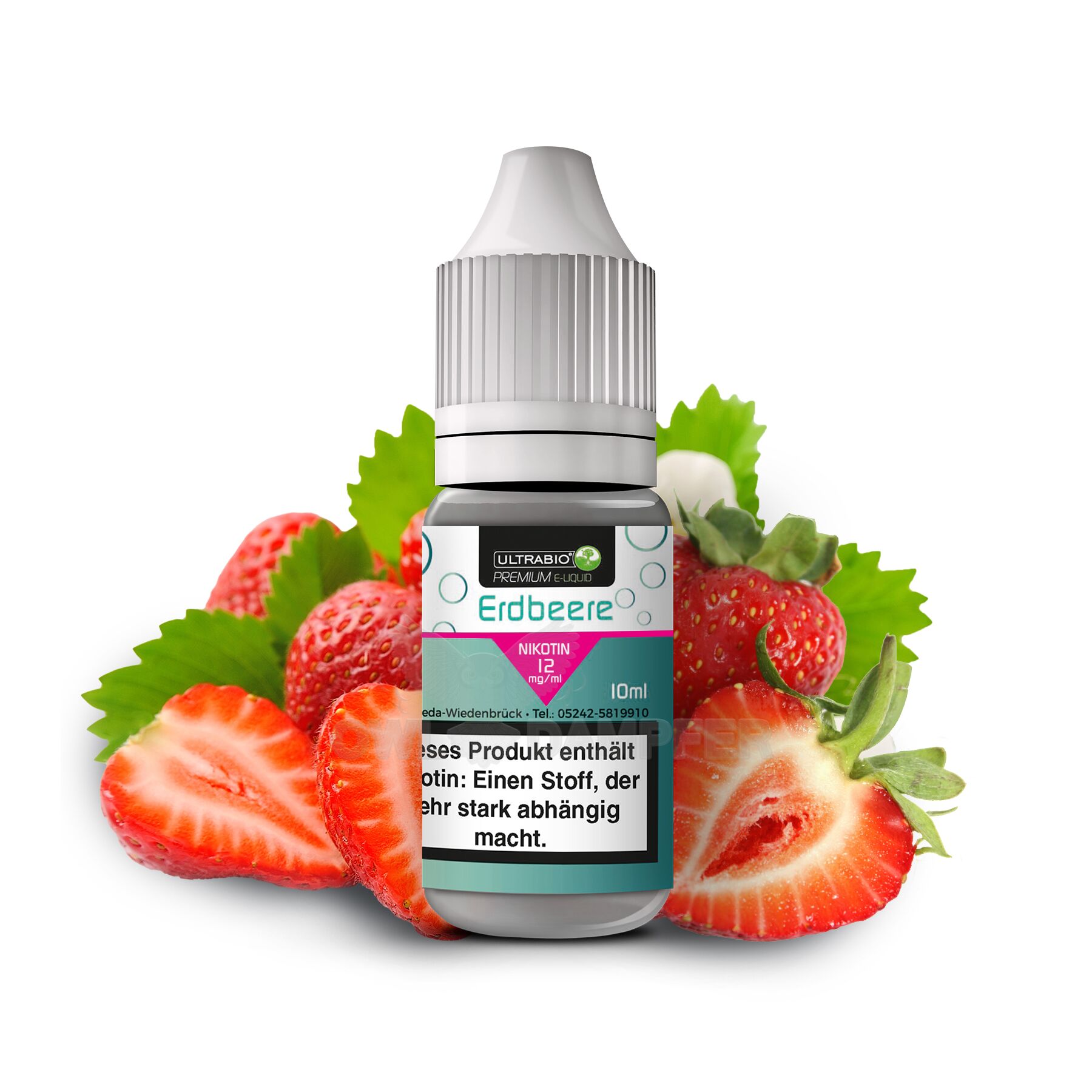 Mischverhältnis: 50 PG / 50 VG.Ultrabio® Premium E-Liquid Erdbeere.